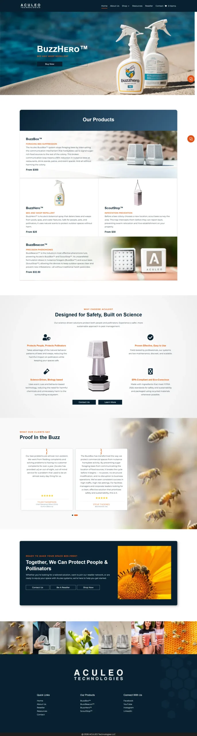 Aculeo needed a modern, product-focused website that could clearly explain complex scientific concepts, support ecommerce, and serve both consumers and industry professionals. The site also needed to establish credibility, guide users through the product ecosystem, and reflect a clean, high-tech brand identity.