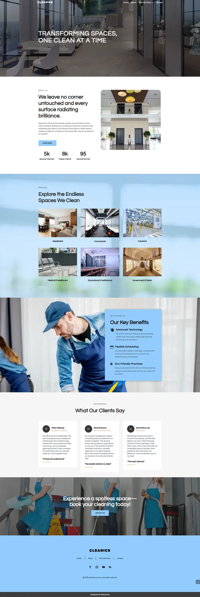 We designed a modern, mobile-friendly website using WordPress and Divi. We created clean layouts with clear calls to action, optimized the site for fast loading and SEO. We also emphasized their brand identity with consistent visuals, service highlights, and customer assurance features, giving Cleanics a platform that builds trust and drives inquiries.